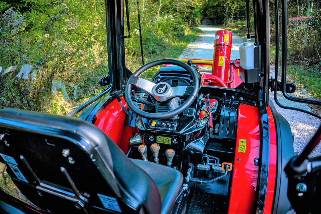 Otočné pracoviště umožňuje obsluze snadné ovládání stroje, lepší komfort při práci a vynikající výhled bez ohledu na vykonávanou práci. Komfortní sedadlo poskytuje řidiči optimální posed a ovládací páky jsou vždy na dosah. Tento traktor je výkonný, přesný v ovládání, stabilní na prudkých svazích a umožňuje bezpečnou a spolehlivou práci i za těch nejnáročnějších podmínek.